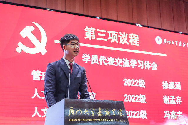 管理学院学子徐森涵,人文与传播学院学子谢孟存、冯鑫宇3名学员代表,分享了自己的学习心得。