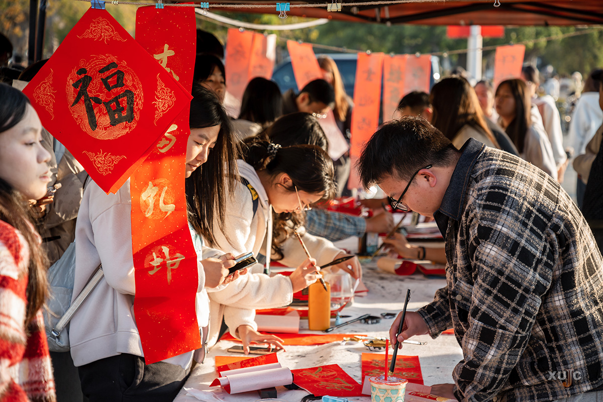 翰墨飘香庆元旦,丹青溢彩迎新年。12月29日与30日两天的下午,您去图书馆前、栖霞湖畔写春联、接祝福了吗?厦门大学嘉庚学院工会、书画协会联合在此举办一年一度最“红火”的活动——“纳福雅集”义赠春联。活动吸引了众多师生参与,为冬日“嘉园”增添了一抹亮丽的“中国红”,带来了浓浓年味。
