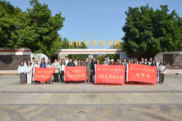 为纪念中国人民抗日战争暨世界反法西斯战争胜利80周年,传承红色基因,凝聚奋进力量,11月26日下午,厦门大学嘉庚学院法学院学生党支部、英语语言文化学院学生党支部、音乐与舞蹈学院学生党支部、设计与创意学院学生党支部前往南炮台海防公园联合开展研学活动,法学院党建指导老师梁达鑫,设计与创意学院党建指导老师赖赟以及各学院学生代表参加此次活动。