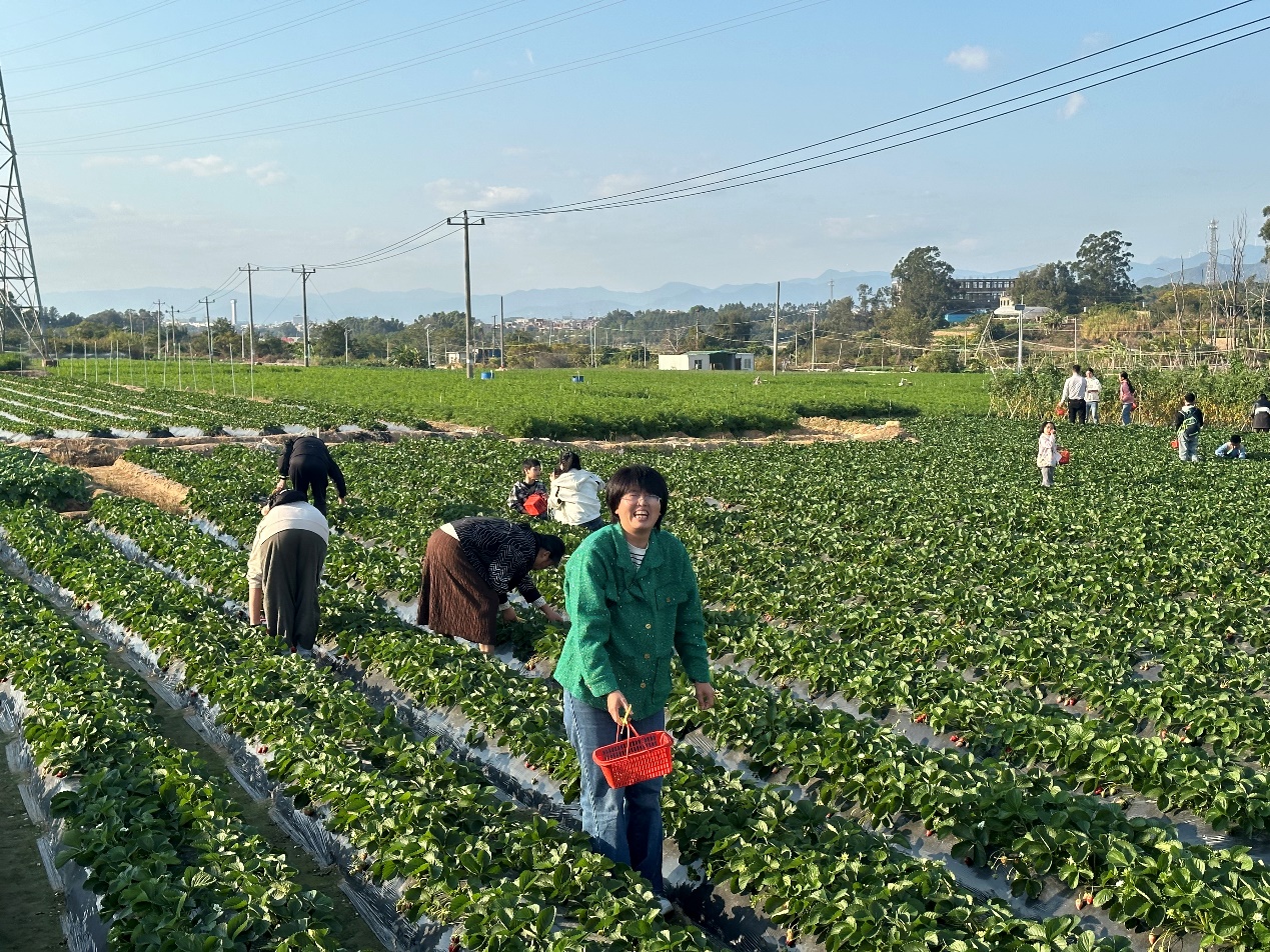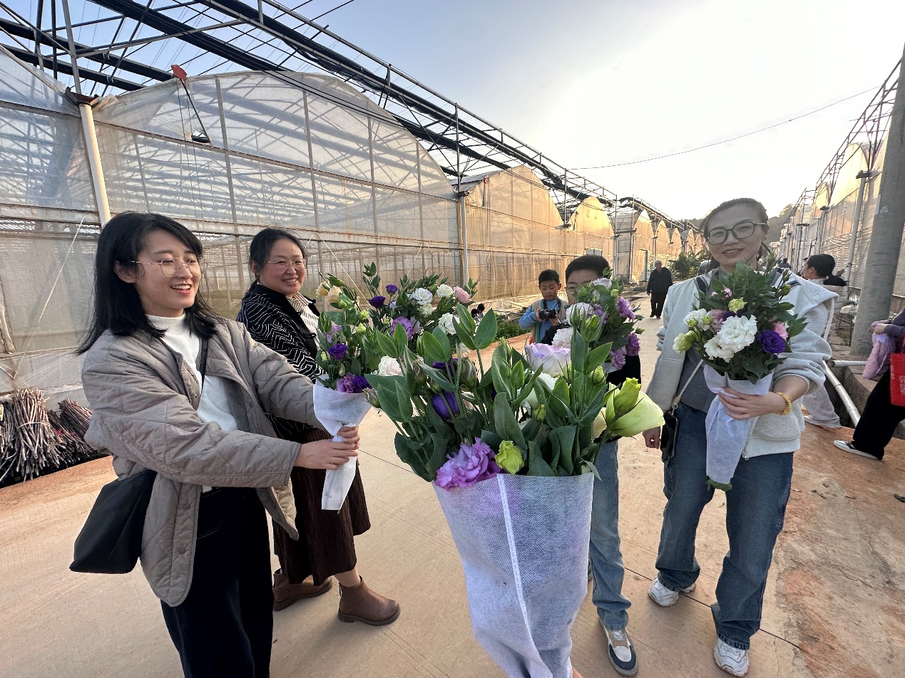 活动尾声的自由体验环节,田园采摘成为一大亮点。部分会员走进田间,亲手采摘鲜红饱满的草莓,在绿意盎然的藤蔓间感受收获的喜悦;也有教职工步入花田,细致挑选各色盛放的洋桔梗,体验花卉采摘的宁静与美好。亲近自然的过程,让大家在劳作中放松身心,也进一步增强了团队的凝聚力与归属感。